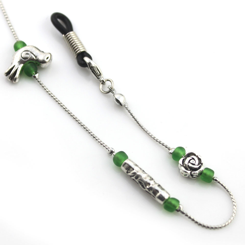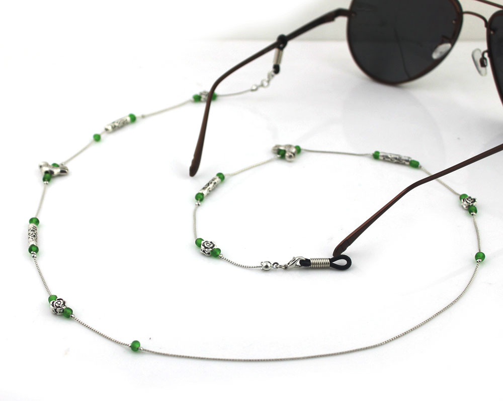 سلسلة النظارات الشمسية فضية مع الخرز الأخضر